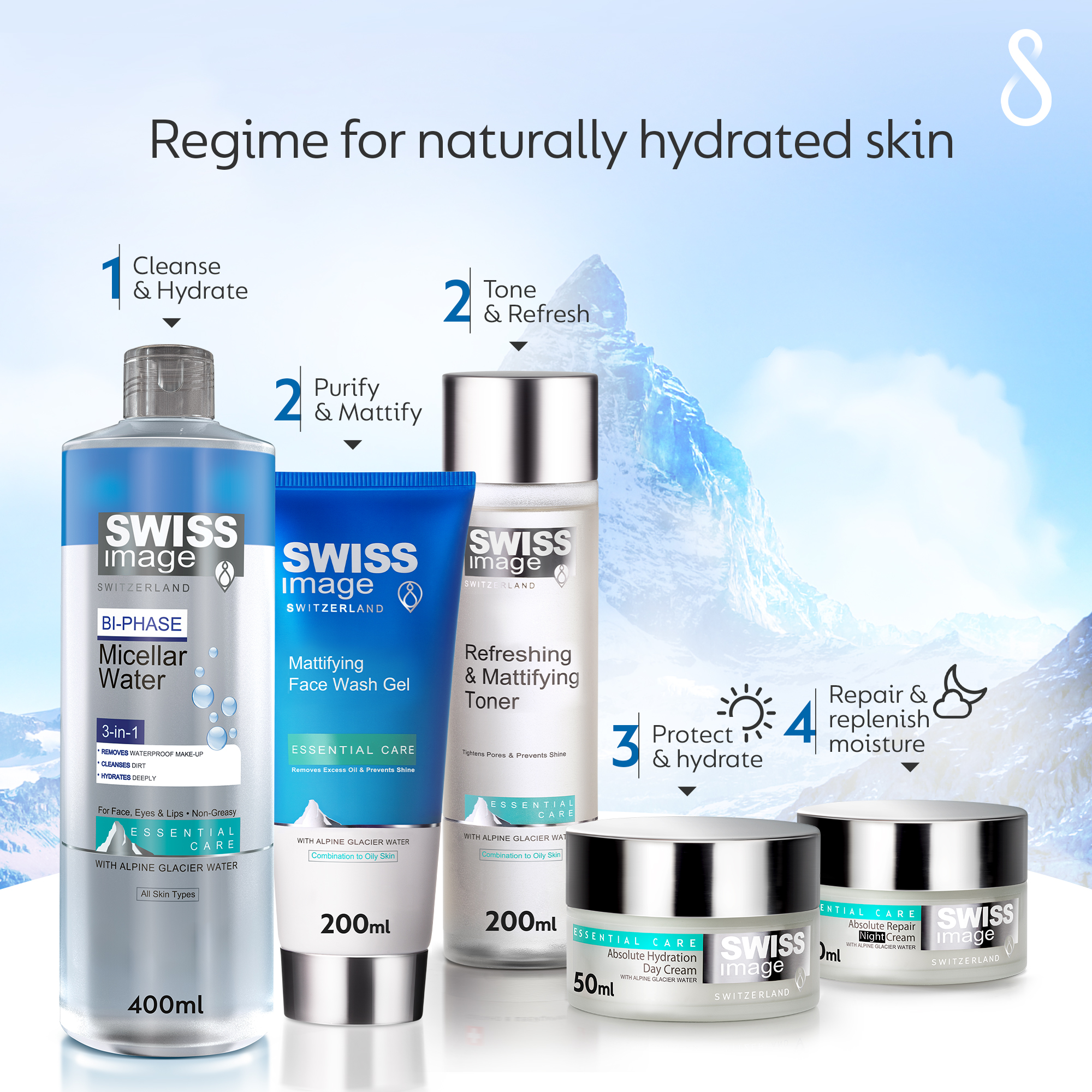 Swiss Image Двухфазная мицеллярная вода 400 мл | Средство для снятия макияжа 3-в-1 для лица, глаз и губ | Нежирный, удаляет макияж, увлажняет и освежает, формула не требует смывания | Все типы кожи | Сделано в Швейцарии