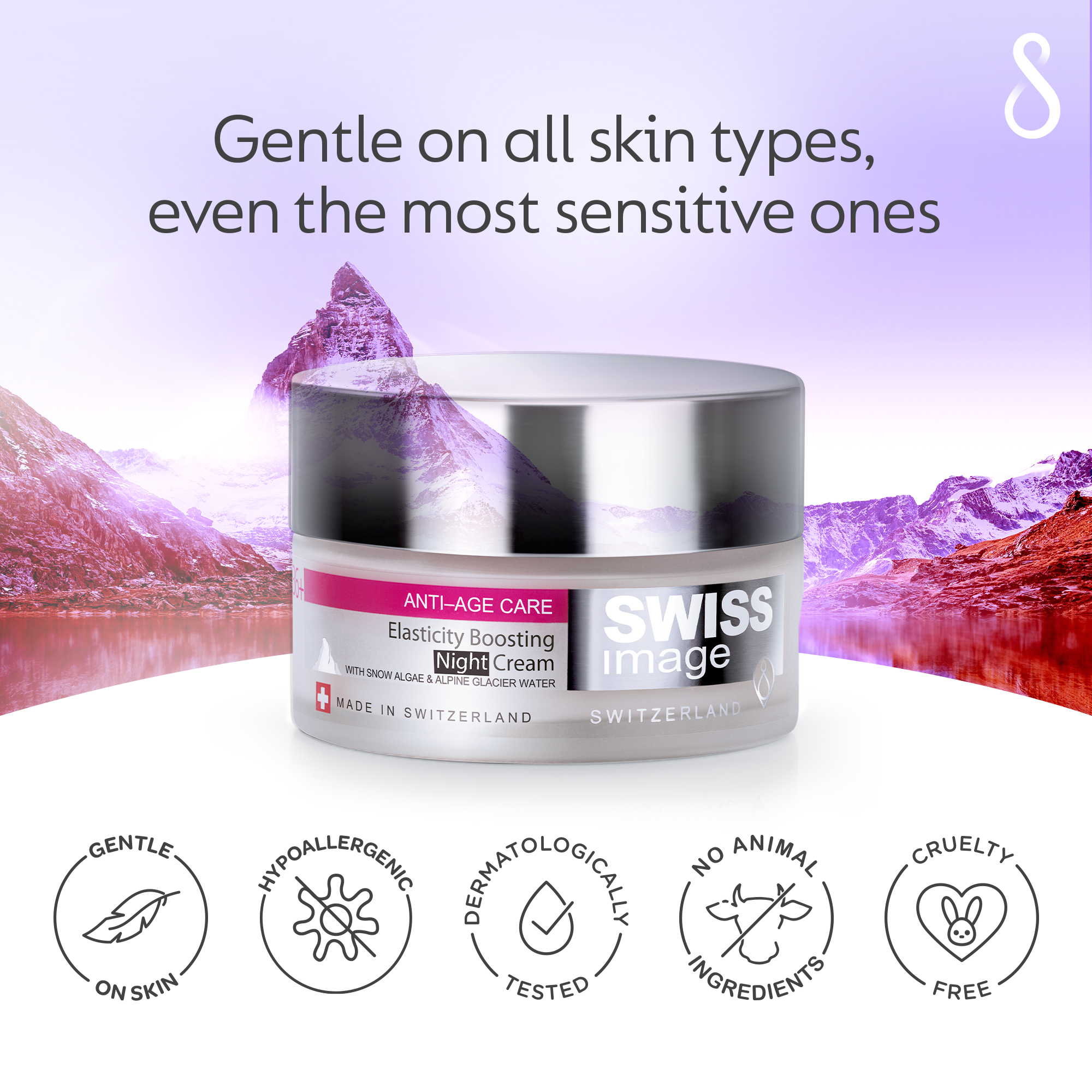Swiss Image Ночной крем против старения 50 мл | Антивозрастная формула с повышенным содержанием коллагена, увлажняющим, разглаживающим морщины и восстанавливающим ночным кремом для гладкой и сияющей кожи | Сделано в Швейцарии | Все типы кожи