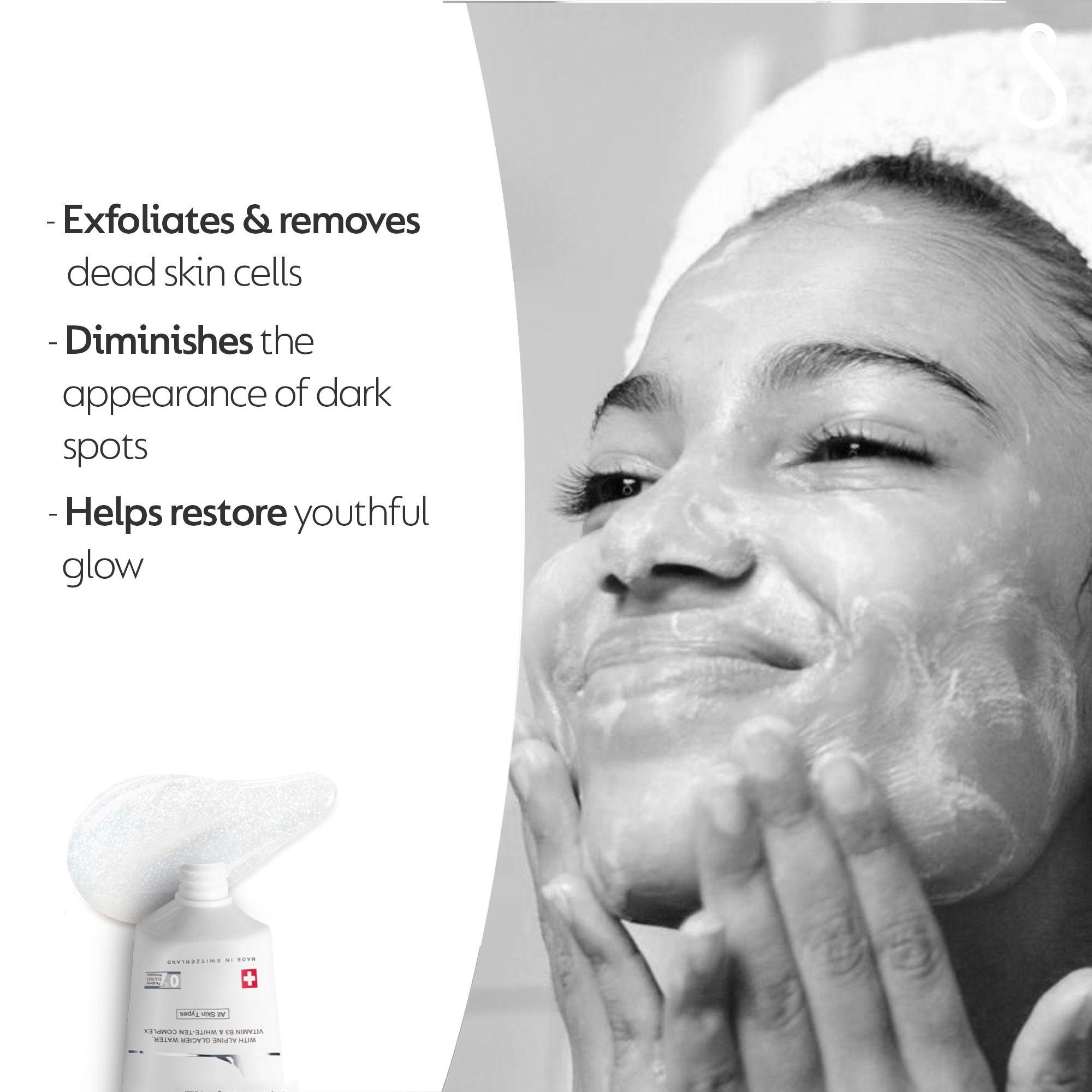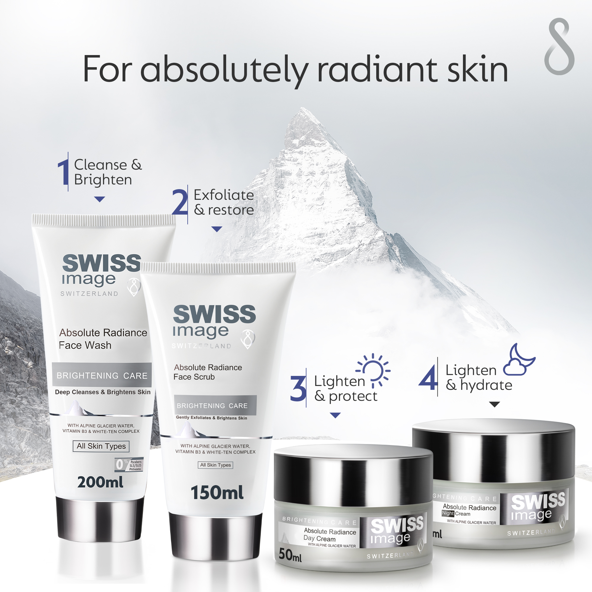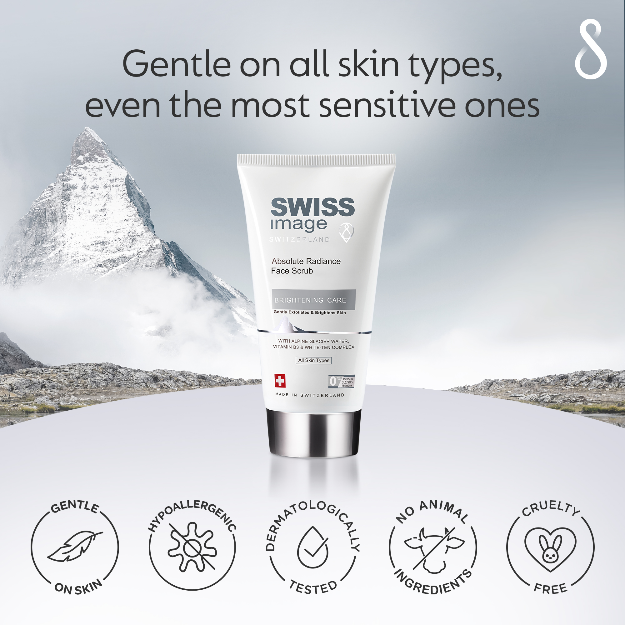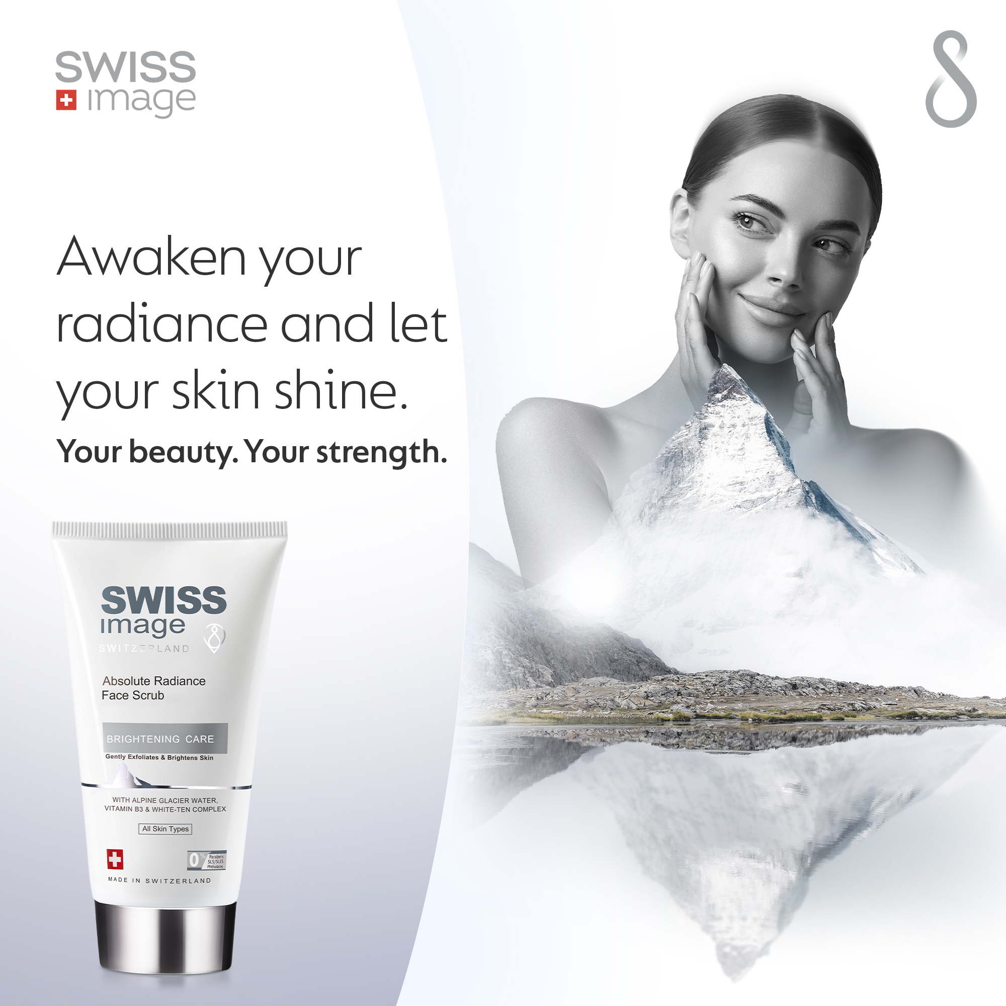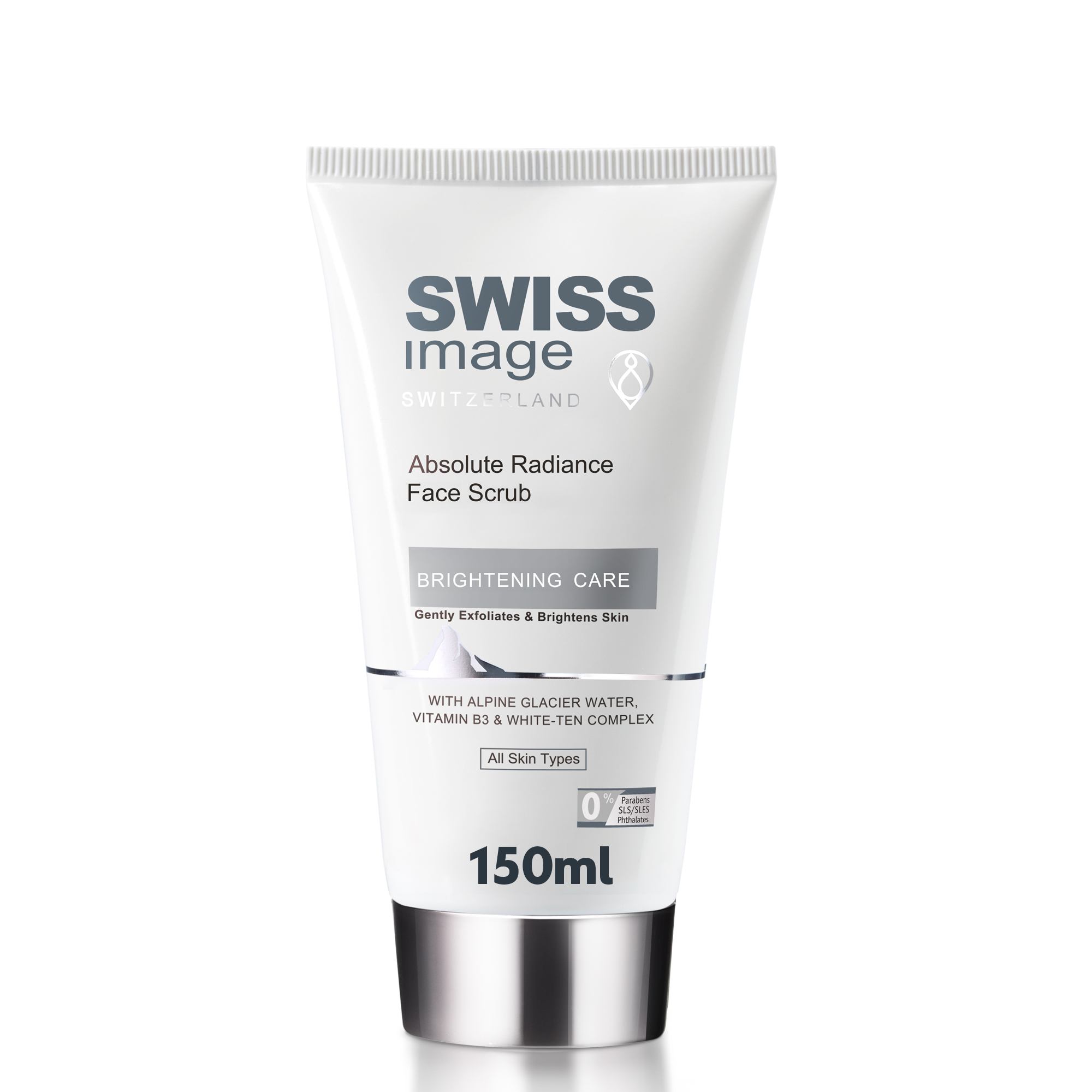 Swiss Image Скраб для лица «Абсолютное сияние» 150 мл | Мягко отшелушивает, осветляет и разглаживает кожу | Обогащен ниацинамидом для сияющей кожи | Подходит для всех типов кожи | Сделано в Швейцарии | Для мужчин и женщин