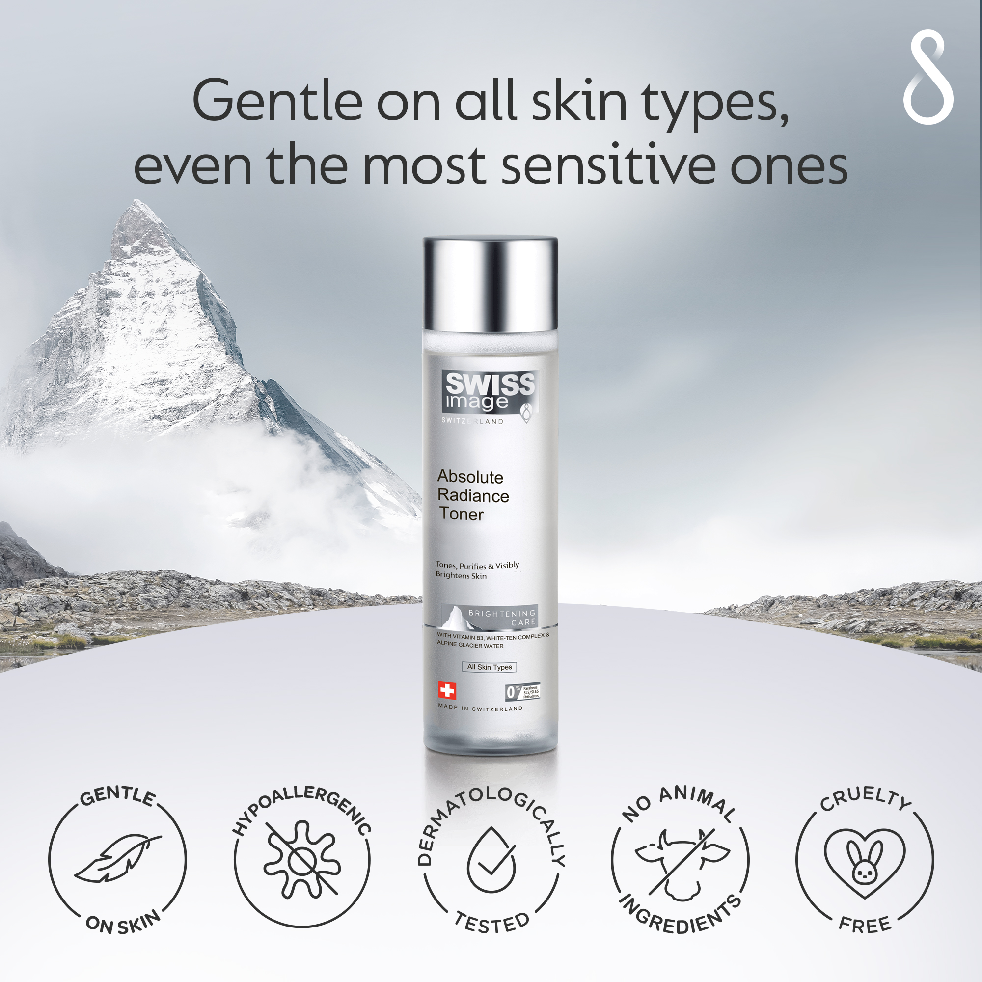 Тоник для лица Swiss Image для абсолютного сияния с ниацинамидом, 200 мл для осветления и увлажнения | Уменьшает темные пятна, гиперпигментацию и выравнивает тон | Все типы кожи | Мужчины и женщины | Сделано в Швейцарии