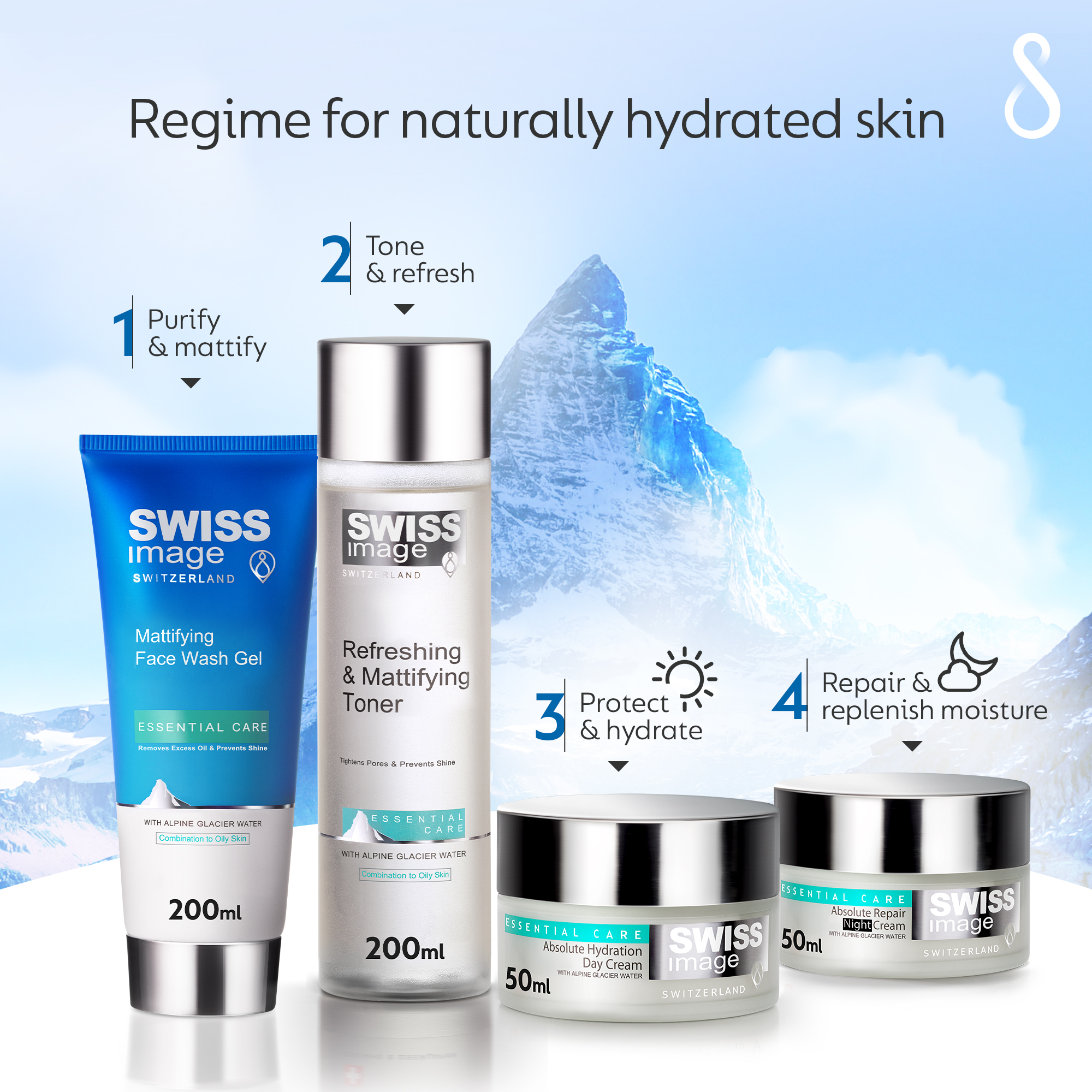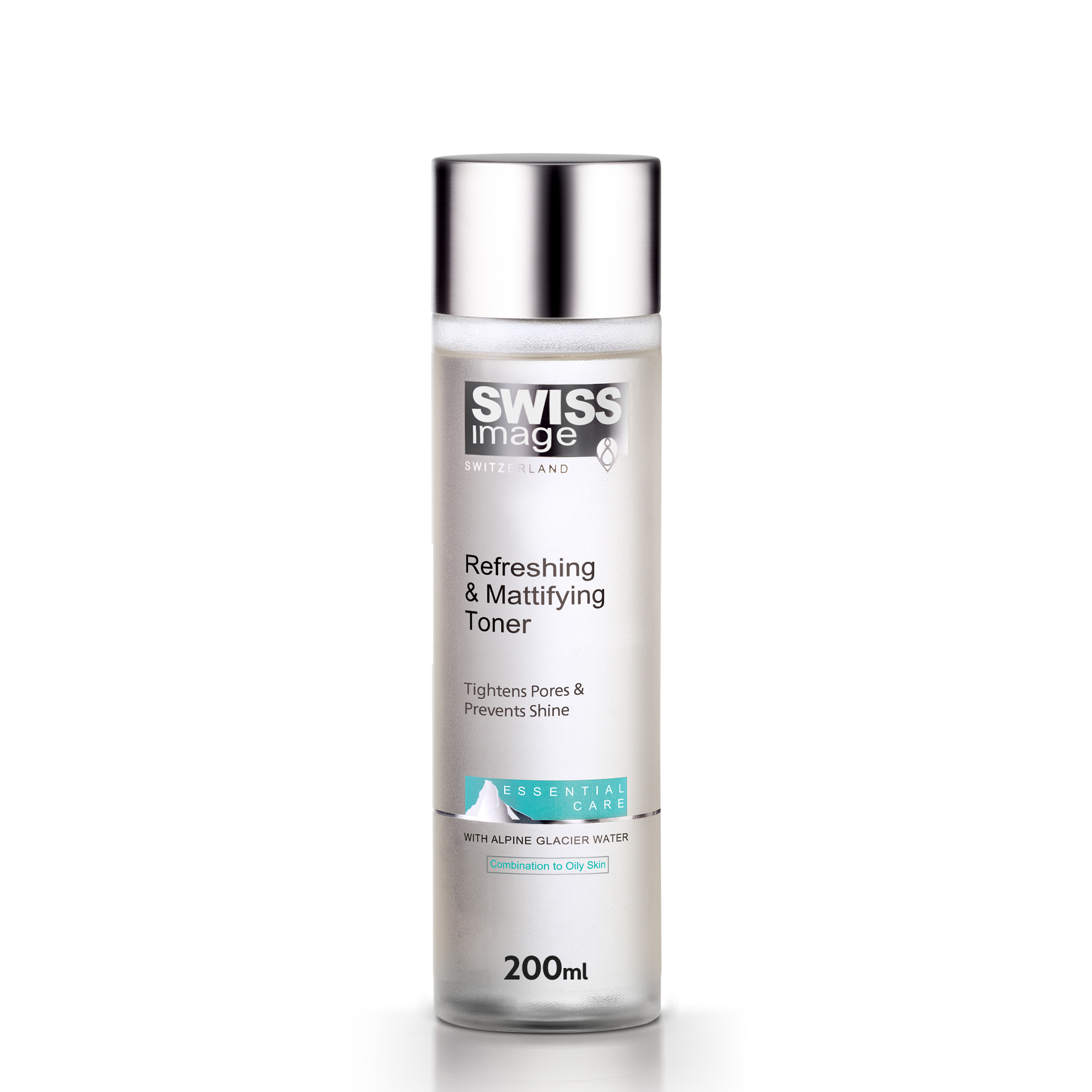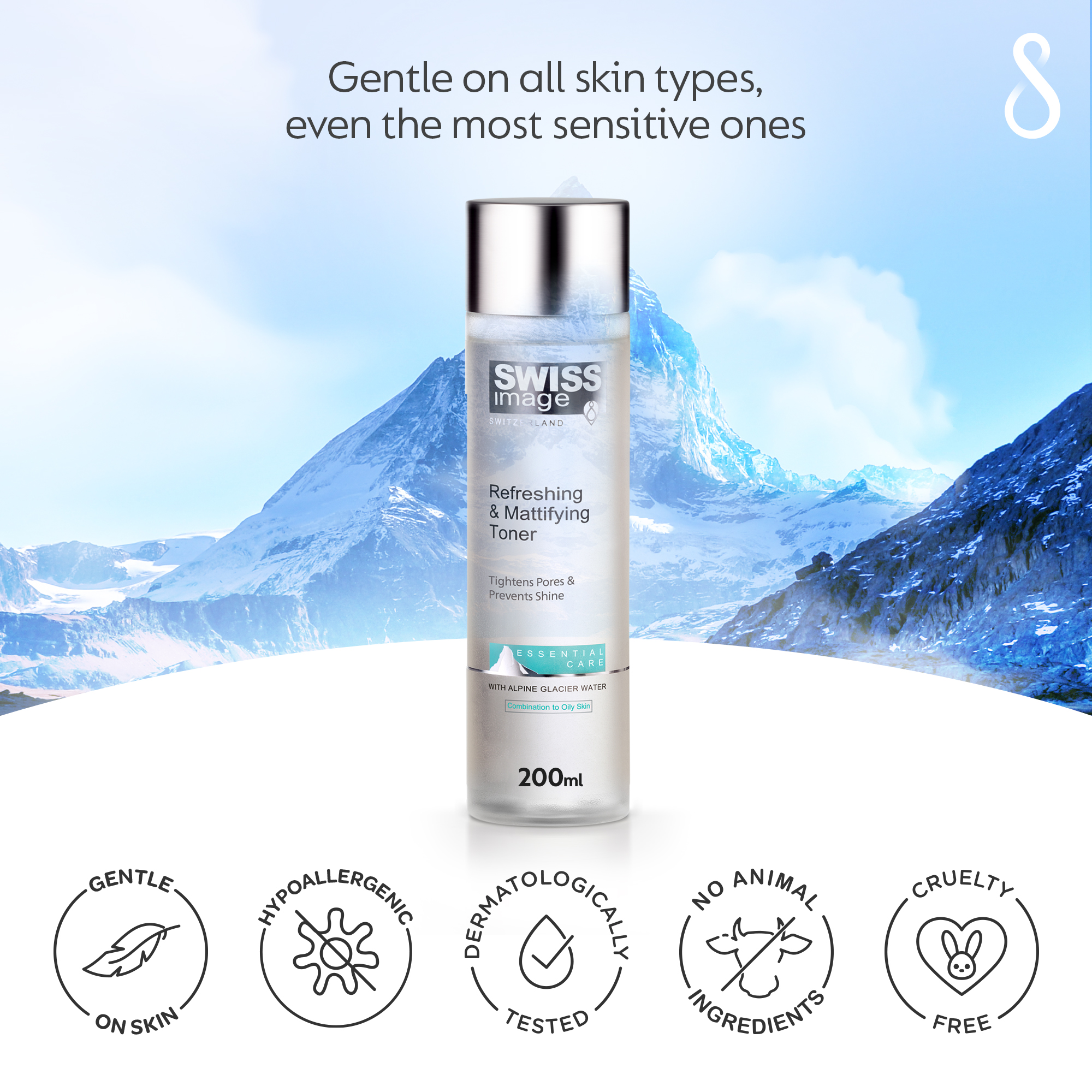 Swiss Image Тоник для лица освежающий и матирующий 200 мл | Контроль жирности, сужение пор и успокоение кожи | Увлажняющий тоник для лица для жирной, склонной к акне и комбинированной кожи | Для мужчин и женщин | Сделано в Швейцарии